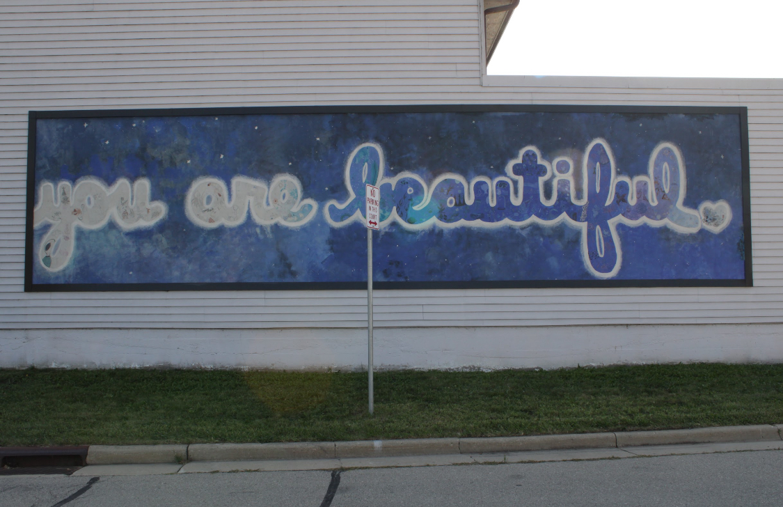 “You are Beautiful" mural by Alaura Seidl and Wendi Kent. This gorgeous piece was made to inspire queer youth, especially those who are transgender. The mural conveys the message that being queer is a beautiful thing, even if the world tells you otherwise. This art is on the side of the Art Inn on East Washington Avenue.